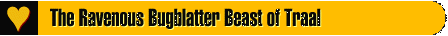 Meanwhile, Zaphod had been attacked by the Hagunnenon Admiral, a shape shifter who had turned into the ravenous Bugblatter Beast of Trall and who then ate Zaphod before shifting into an escape pod, allowing him to escape. He had a dream visit from his pre-Presidential self who revealed to him that he must go Ursa Minor Beta, headquarters of the Hitch Hikers Guide to the Galaxy to make contact with a mysterious man named Zarniwoop who would tell him something to his disadvantage. There he met Marvin and a Guide researcher named Roosta. The building was then uprooted by Frogstar scout robots with Zaphod and Roosta, leaving Marvin behind. The building was deposited on the Frogstar Planet, where Zaphod was thrown into the Total Perspective Vortex, a machine built with the intention of showing beings the infinity of creation, which had become used as a method of torture. Zaphod Beeblebrox was subjected to the vortex and became the first person to survive it.