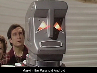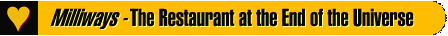Later, during the use of the Infinite Improbability Drive, the ship picked up Arthur Dent and Ford Prefect, who were floating unprotected in deep space in the same star sector, having just escaped the destruction of the same planet. With Zaphod Beeblebrox and Trillian, Ford and Arthur then travelled to the legendary planet Magrathea, which had originally built the planet Earth as part of a 10 million year long experiment by extradimensional white mice seeking the question to the ulitimate answer to life, the universe and everything (which is 42). Galactic police attempted to arrest the fugitive ex-President, causing a hyperspace feild generator (behind which Arthur, Ford et al were hiding) to explode, opening a temporal rift through which they were thrown to the Heat Death of the Universe (or Gnib Gnab), site of Milliways, the Restaurant at the End of the Universe, where they were reunited with Marvin, who had been stranded on Magrathea, now site of Milliways for a consireablt number of billions of years.
