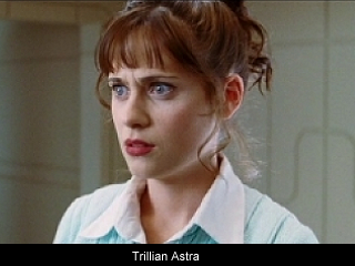 - Trillian Astra is a slim humanoid, with long waves of dark hair, a full mouth, an odd little knob of a nose and ridiculously blue eyes. With her red head scarf knotted in a particular way and her long flowing silky brown dress, she looks vaguely Arabic. Tricia McMillan, her alternate incarnation, is blonde. When the two forms merged when ZZ9 Plural Z Alpha was destroyed, forming a gestalt with blonde hair.