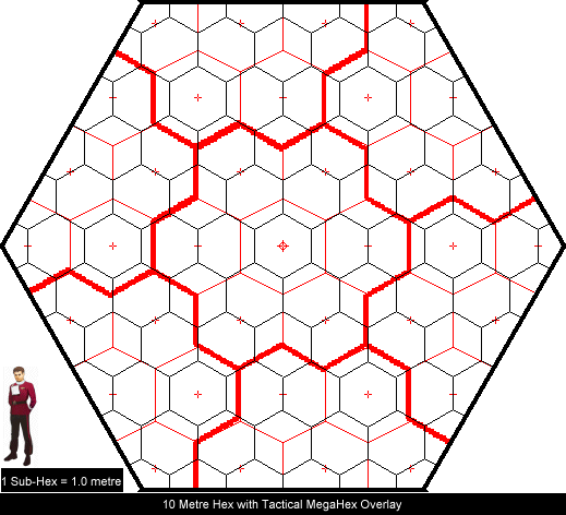 - A Tactical Hex is 10m in diametre, depicted with MegaHexes.