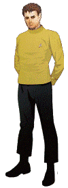 The ship's insignia is worn on the left breast of the tunic. The insignia of the USS Enterprise is a stylised arrowhead, rendered in gold with a black outline. Centred in the arrowhead is the branch symbol: a star for Command, a planetary sphere for Sciences, a coiled lightning bolt for Operations and a chess knight for Marines.
