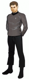 The current Starfleet uniform consists of a branch-coloured pullover tunic with a ribbed collar. The tunic is worn with matching black trousers and black ankle-height boots. Branch colours are gold for Command, blue for Sciences, tan for Operations and grey for Marines. All personnel within a department wear the branch colour of the parent branch.